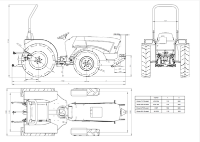 Malotraktor má větší rozvor o 100 mm, větší šířku stroje a větší rozměr zadních kol 11,2x20. Nárůstem velikosti zadních kol je zajištěna lepší průchodnost terénem, lepší svahová dostupnost a také zvýšená trakce. Větším rozvorem je zajištěno lepší rozložení hmotnosti jak u přední, tak zadní aplikaci pracovního nářadí a také zvětšený prostor pro obsluhu.